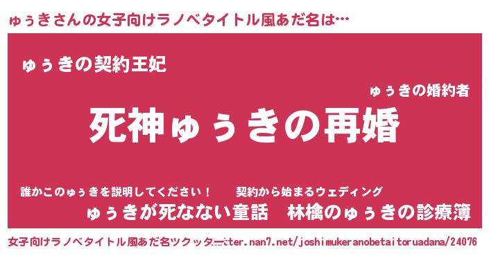 | 男性向けラノベタイトル風あだ名 | 『ノーゲーム・ノーュゥキ』 |