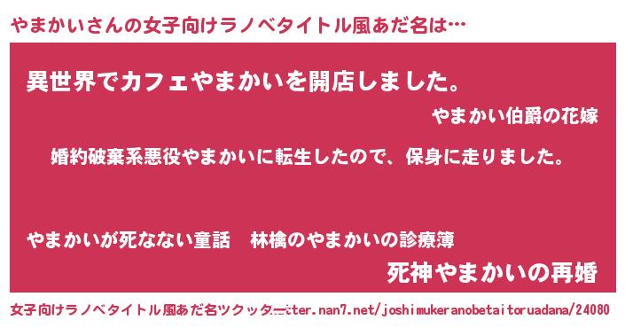 | 胡散臭い通販商品みたいなあだ名 | 『絶対に幸福をもたらす健康食品…その名も「やまかい」』 |