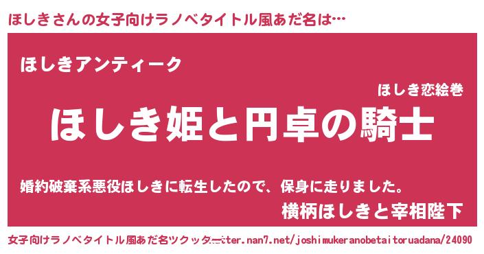| 男性向けラノベタイトル風あだ名 | 『ほしきの憂鬱』『魔法科高校のほしき』 |