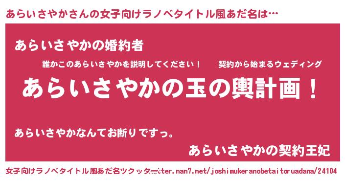 | 男性向けラノベタイトル風あだ名 | 『あらいさやか~年齢イコール彼女いない歴の魔法使い~』 |