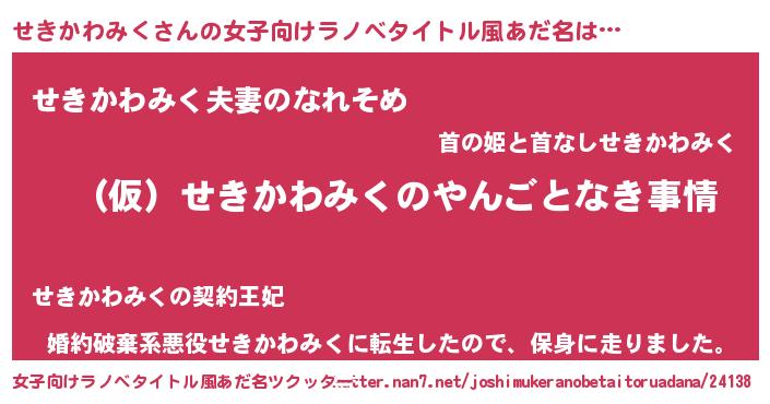 | 胡散臭い通販商品みたいなあだ名 | 『必ず成功する霊験あらたかなお札…その名も「せきかわみく」』 |