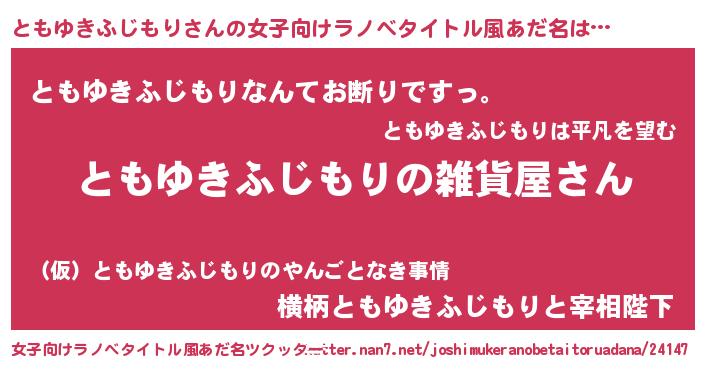 | 男性向けラノベタイトル風あだ名 | 『やはりともゆきふじもりの青春ラブコメはまちがっている 』 |