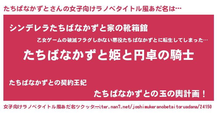 | 男性向けラノベタイトル風あだ名 | 『たちばなかずとの憂鬱』 |
