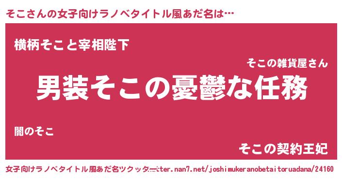 | 男性向けラノベタイトル風あだ名 | 『うちのそこが世界を掌握している!』 |