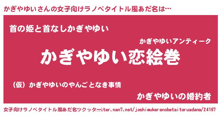 | 男性向けラノベタイトル風あだ名 | 『おまえをオタクにしてやるから、俺をかぎやゆいにしてくれ! 』 |