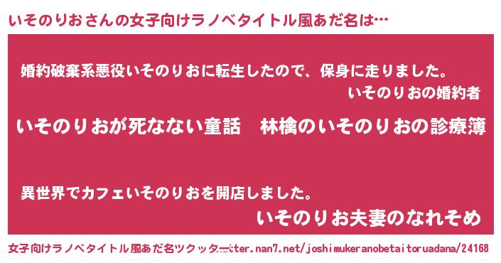 | 意味不明あだ名 | 『住所不定無職いそのりお(8歳)』 |