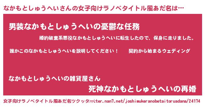 | 男性向けラノベタイトル風あだ名 | 『ナカモトシュウヘイアートオンライン』 |