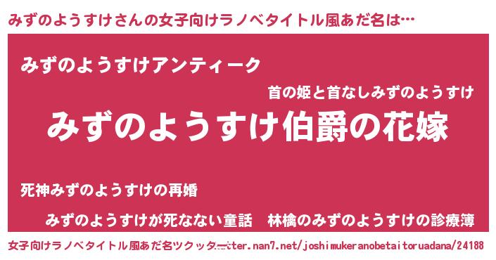 | 男性向けラノベタイトル風あだ名 | 『やはりみずのようすけの青春ラブコメはまちがっている 』 |