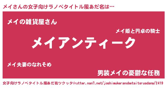 | 胡散臭い通販商品みたいなあだ名 | 『テレビで話題の高麗人参…その名も「メイ」』 |