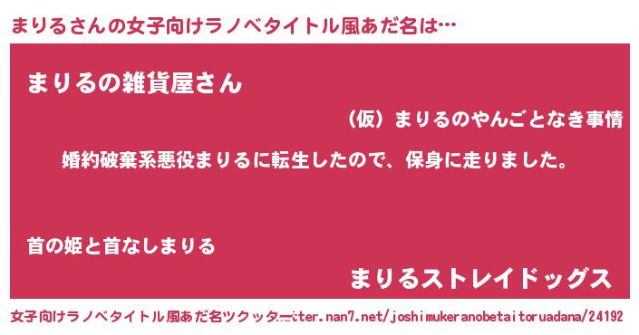 | 男性向けラノベタイトル風あだ名 | 『転生したらまりるだった件』 |