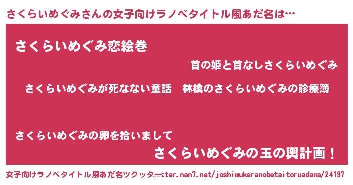 | ヘコむあだ名 | 『さくを』『さくらいめぐみ(笑)』 |