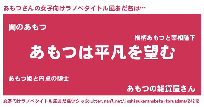 | 胡散臭い通販商品みたいなあだ名 | 『信頼と実績のネックレス…その名も「あもつ」』 |