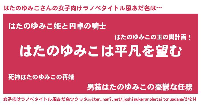 | ポケモン風あだ名 | 『ヒハタノユミコ』『ハタチュウ』 |