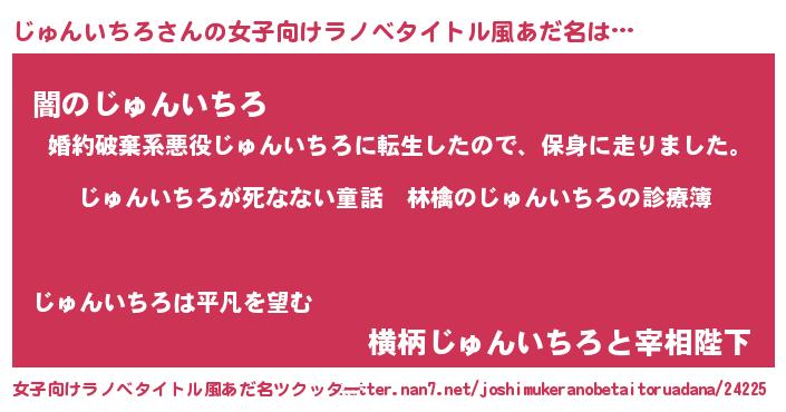 | 男性向けラノベタイトル風あだ名 | 『魔弾の王とじゅんいちろ』 |