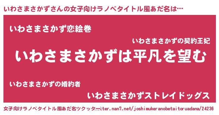 | 男性向けラノベタイトル風あだ名 | 『ダンジョンにいわさまさかずを求めるのは間違っているだろうか』 |