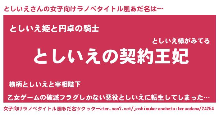 | 意味不明あだ名 | 『永久保存としいえ』『ペロリンとしいえ』 |