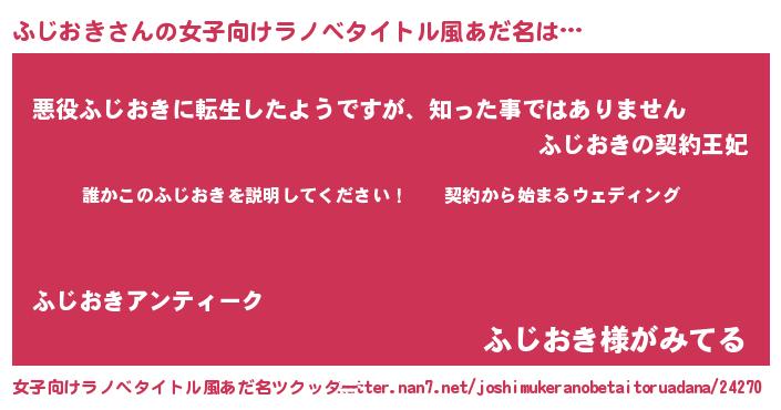 | 男性向けラノベタイトル風あだ名 | 『フジオキアートオンライン』 |