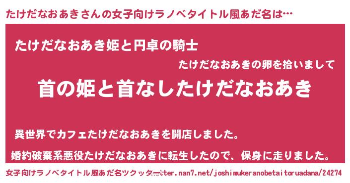| 男性向けラノベタイトル風あだ名 | 『はたらくたけだなおあきさま!』 |