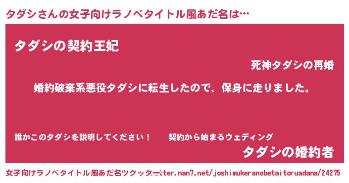 | 男性向けラノベタイトル風あだ名 | 『タダシスレイヤー』 |