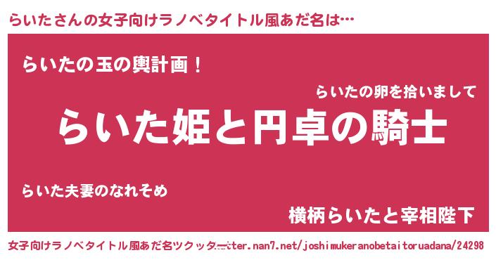 | 男性向けラノベタイトル風あだ名 | 『らいたの憂鬱』 |