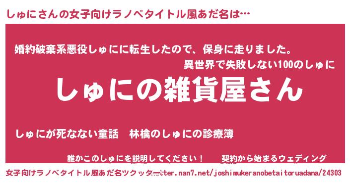 男性向けラノベタイトル風あだ名 | 『やはりしゅにの青春ラブコメはまちがっている 』 |