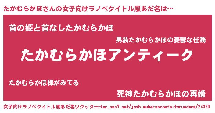| 意味不明あだ名 | 『自称たかむらかほ』 |