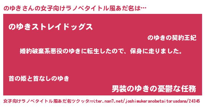 | 男性向けラノベタイトル風あだ名 | 『ノユキスレイヤー』 |