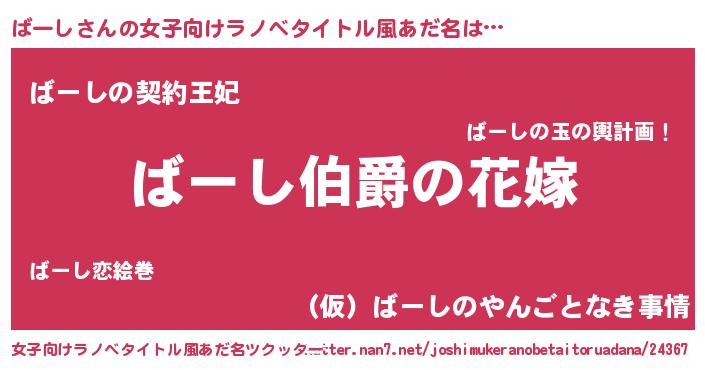 | 胡散臭い通販商品みたいなあだ名 | 『世界が平和になる高級そうな壺…その名も「ばーし」』 |