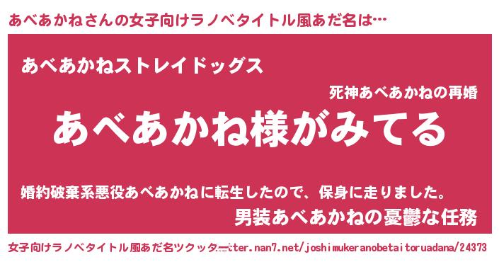 | 意味不明あだ名 | 『とにかく怪しいあべあかね』 |