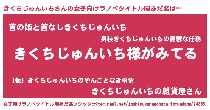 | 男性向けラノベタイトル風あだ名 | 『きくちじゅんいちの嫁は女の子じゃないと思った?』 |