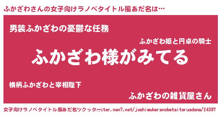 | 男性向けラノベタイトル風あだ名 | 『ふかざわの嫁は女の子じゃないと思った?』 |