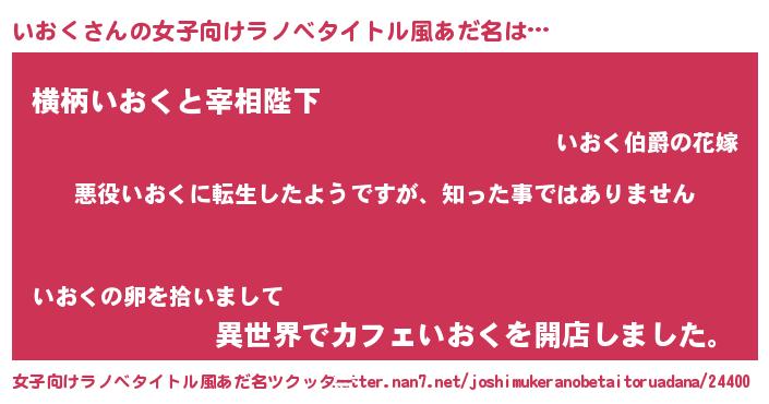 | 胡散臭い通販商品みたいなあだ名 | 『あなたにだけ特別に提供する限定10本のレアな日本酒…その名も「いおく」』 |