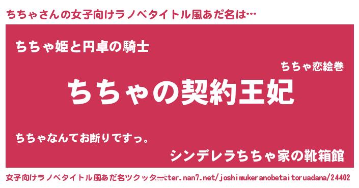 | 男性向けラノベタイトル風あだ名 | 『誰もが恐れるあのちちゃが、ぼくの専属メイドになるようです。』 |