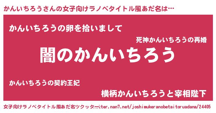 | 男性向けラノベタイトル風あだ名 | 『Re:かんいちろうから始める異世界生活』 |