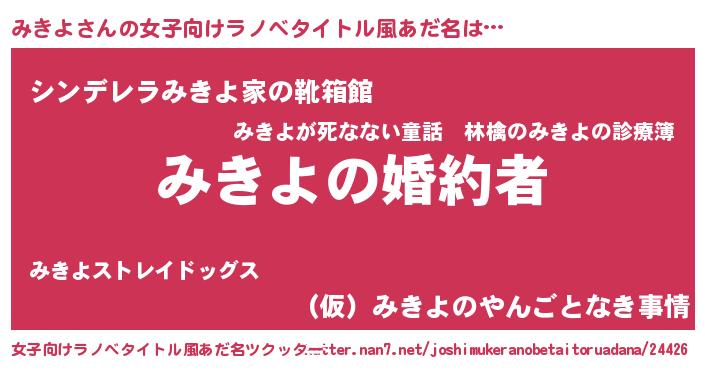 | 肩書あだ名 | 『みきよ国家主席』『みきよ艦長』 |