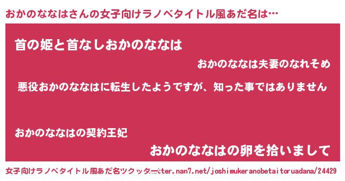 | 男性向けラノベタイトル風あだ名 | 『この素晴らしい世界におかのななはを!』 |