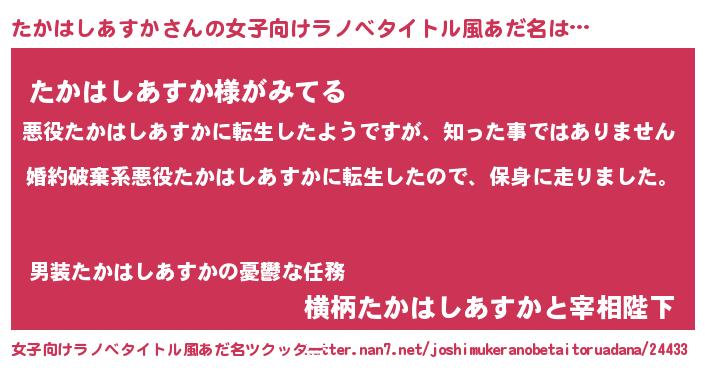 | 男性向けラノベタイトル風あだ名 | 『タカハシアスカスレイヤー』 |