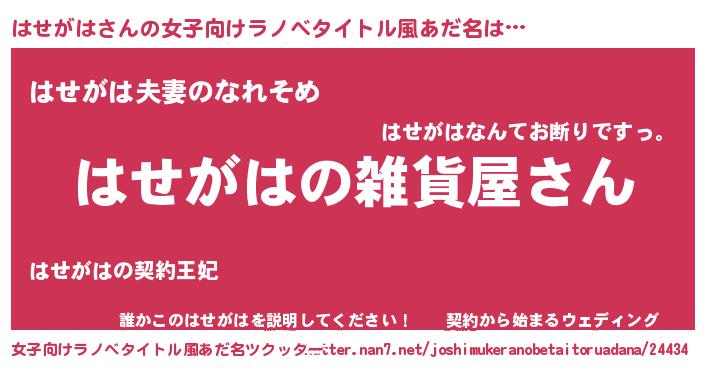 | ヒーロー風カッコイイあだ名 | 『ウルトラはせがはマン』『ネオハセガハ』 |