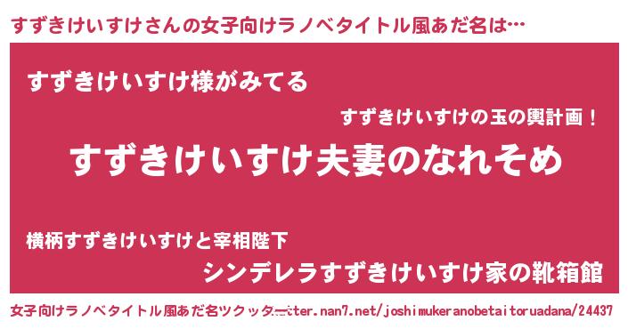 | 男性向けラノベタイトル風あだ名 | 『おまえをオタクにしてやるから、俺をすずきけいすけにしてくれ! 』 |