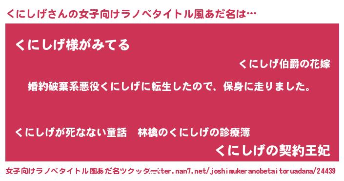 | 男性向けラノベタイトル風あだ名 | 『転生したらくにしげだった件』 |