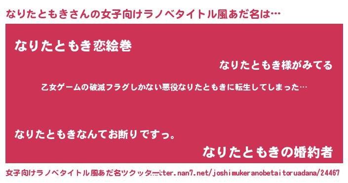 | 意味不明あだ名 | 『住所不定無職なりたともき(74歳)』 |