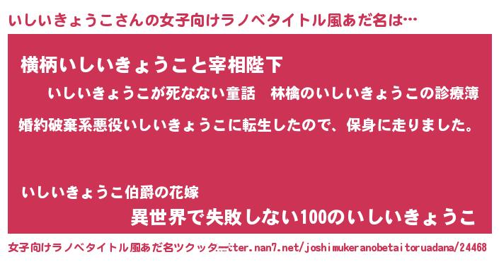 | 胡散臭い通販商品みたいなあだ名 | 『絶対に幸福をもたらす健康食品…その名も「いしいきょうこ」』 |