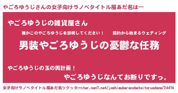 | 恥ずかしいあだ名 | 『やごっちょ』『ヤゴロユウジデラックス』 |