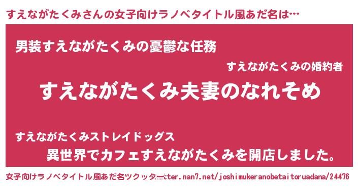| 胡散臭い通販商品みたいなあだ名 | 『100人中100人が認めたイリジウム磁石…その名も「すえながたくみ」』 |