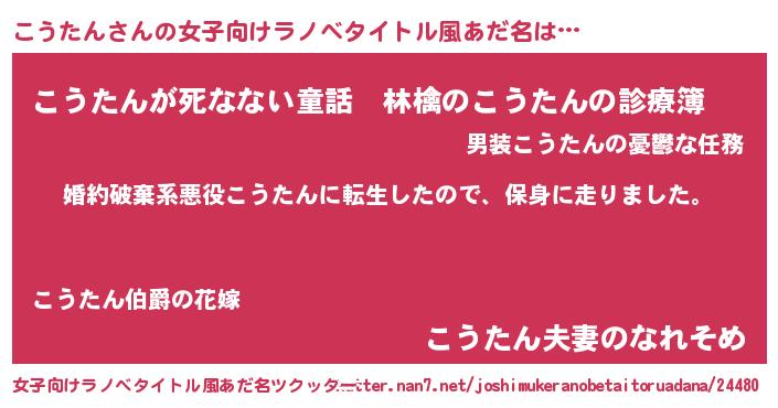 | 男性向けラノベタイトル風あだ名 | 『コウタンスレイヤー』 |