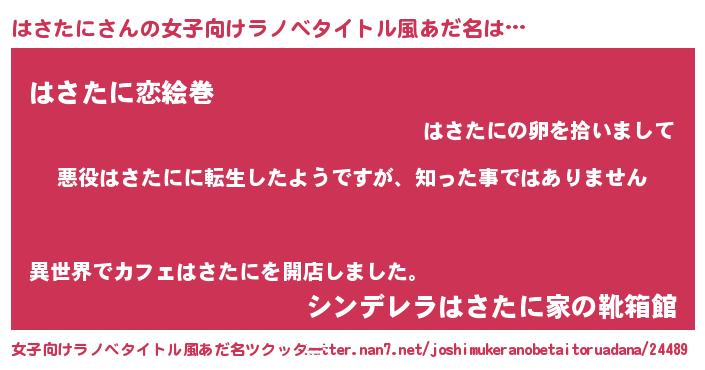 | 胡散臭い通販商品みたいなあだ名 | 『あなたにだけ特別に提供する100年もののヴィンテージワイン…その名も「はさたに」』 |