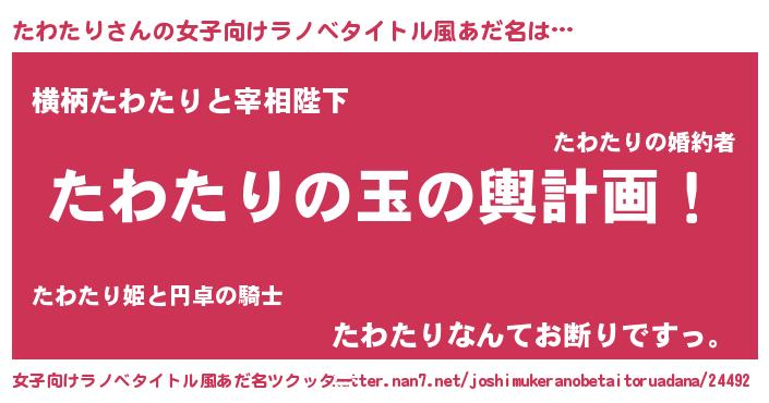 | 胡散臭い通販商品みたいなあだ名 | 『芸能人もオススメする高麗人参…その名も「たわたり」』 |