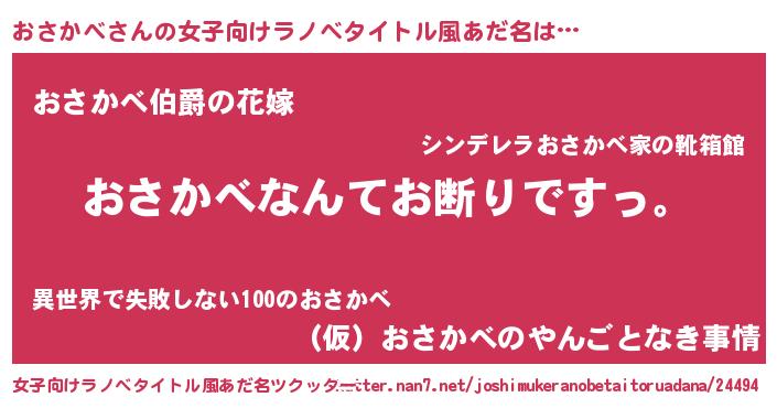 | 意味不明あだ名 | 『自称おさかべ』『おさかべフォーエバー』 |