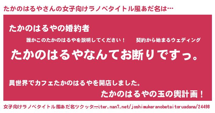 | 男性向けラノベタイトル風あだ名 | 『魔法科高校のたかのはるや』 |