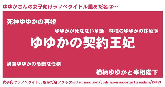 | 男性向けラノベタイトル風あだ名 | 『ゆゆかという概念が存在しない退屈な世界 』 |